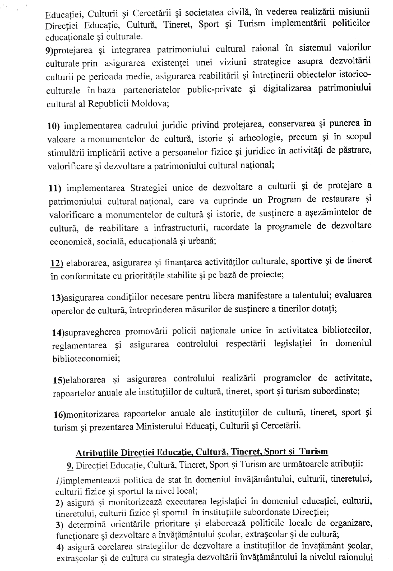 Regulamentul de organizare și funcționare a Direcției educație, cultură, tineret, sport și turism Căușeni aprobat prin Decizia Consiliului raional Căușeni nr. 7/4 din 30 noiembrie 2018